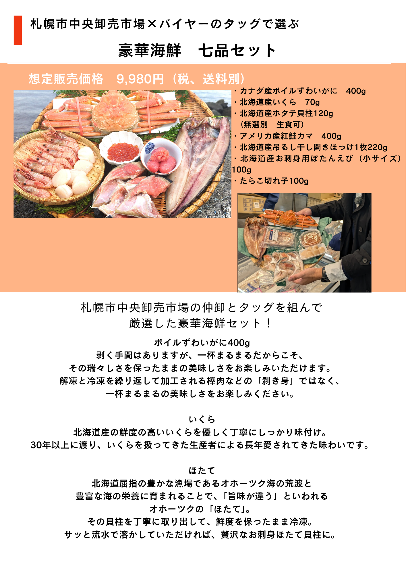 ・札幌市中央卸売市場で集める「海鮮セット」